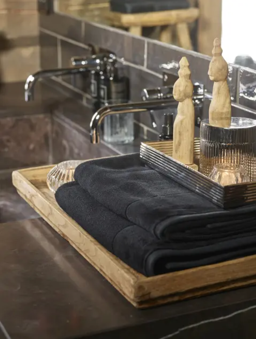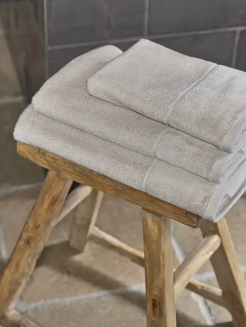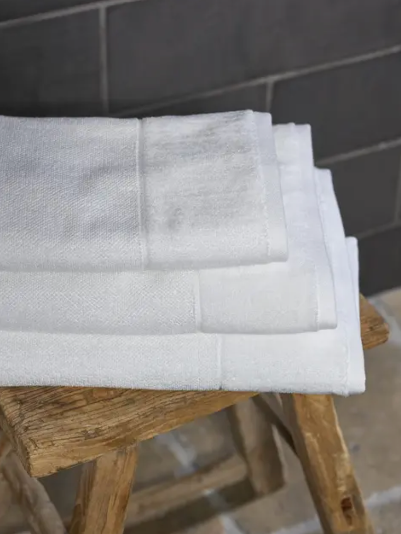 Nydelige håndklær i egyptisk bomull med vakker kant i viskosevelur i Halvor Bakkes vakre fargepalett. Baderommet er viktig for hverdagsluksusen, og det skal bugne av lekre håndklær i nydelige farger. Håndklærne har optimal tørkeevne og er myke mot huden, og tilfører baderommet det myke elementet. Det er tilhørende badematter i den samme lekre fargepaletten som håndklærne.