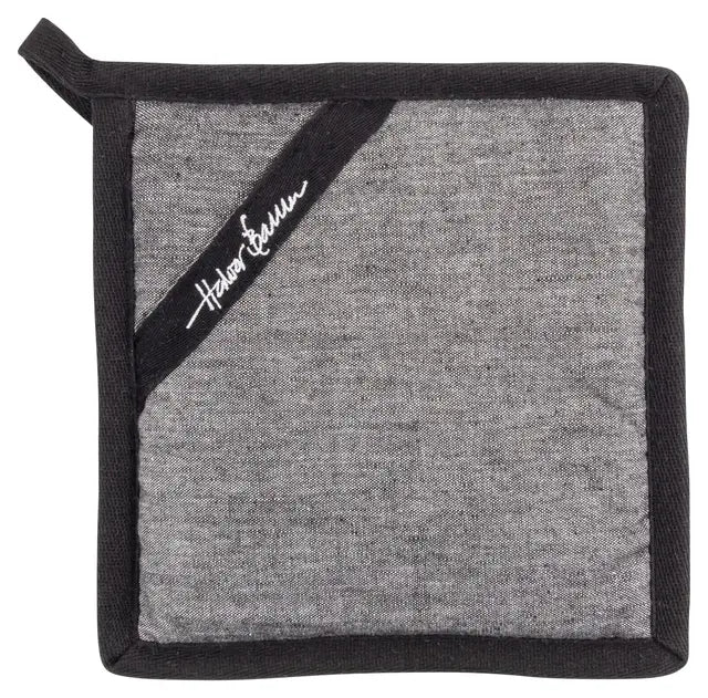 Grytekluter i melert bomull med bred kant. Gryteklutene har åpning til hånden og brodert Halvor Bakke-logo, samt hempe til oppheng. Flott som vertinnegave eller til mannen som har alt.