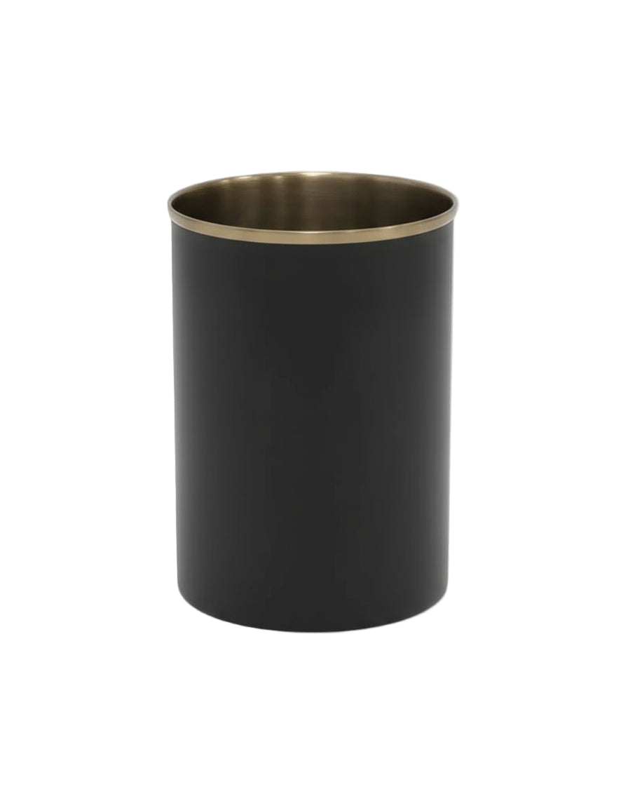 Gio er en superlekker og elegant baderomsserie med akkurat de delene man ønsker å ha på badet. Den fine kombinasjonen av det mørke og gylne gir tilbehøret et sofistikert uttrykk. Dette tannglasset i sort med gulldetaljer gir virkelig luksusfølelsen til badet.