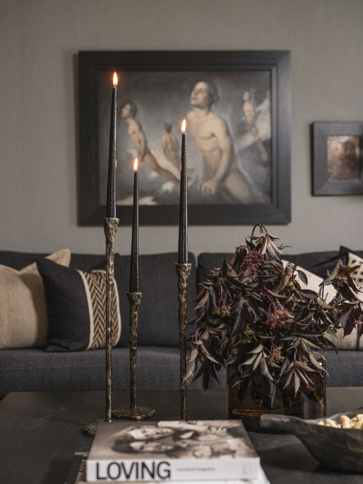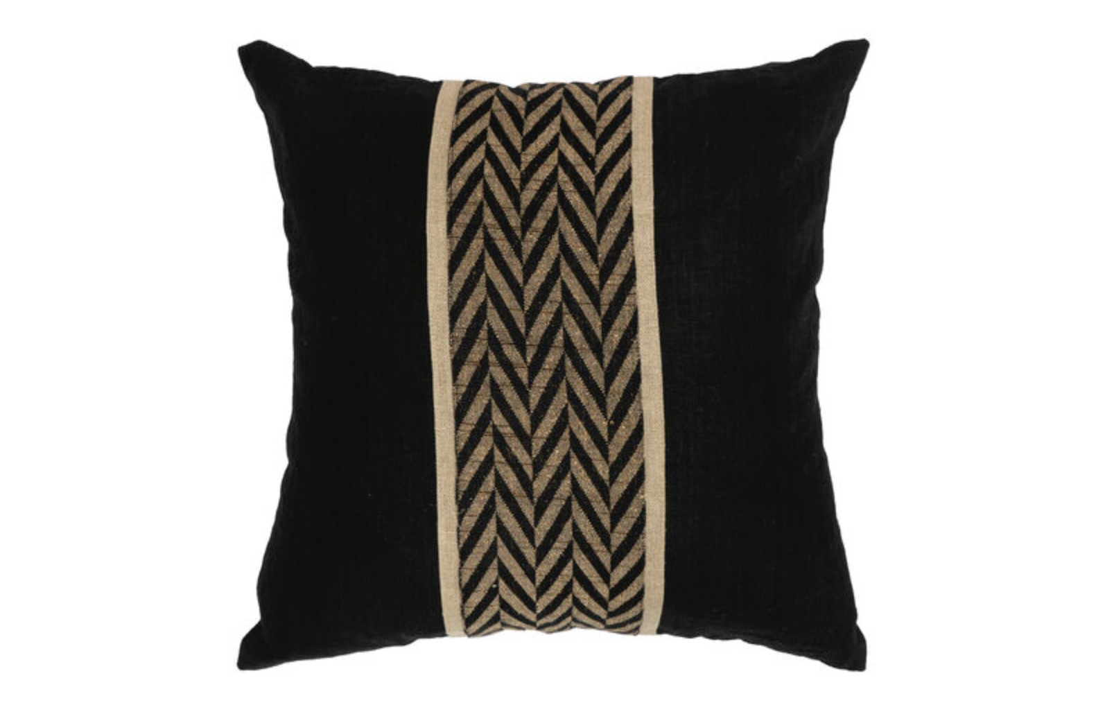 Svart linpute fra Halvor Bakke med en enkel, dekorativ stripe på midten som på en elegant måte gir puten en spennende kontrast.