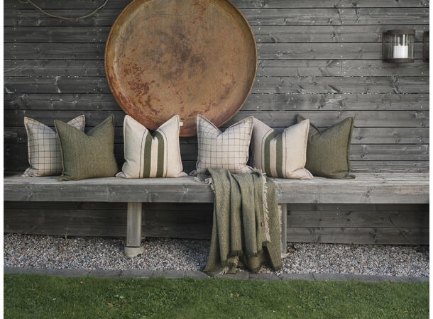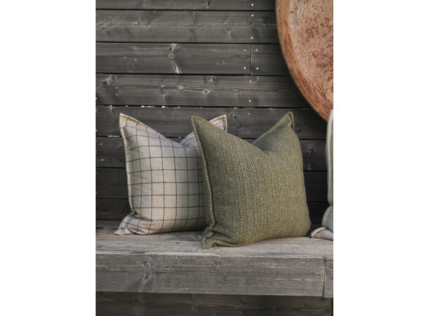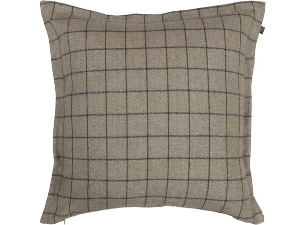 Klassisk pute fra Halvor Bakke med beige bunn og ruter, resirkulert ull.