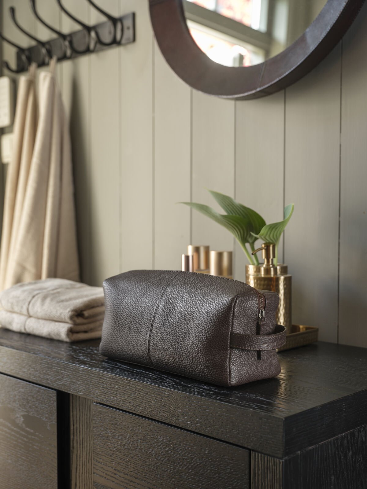 Gi baderommet ditt et løft med denne eksklusive såpedispenseren i bronsefarget metall. Den blanke finishen og det stramme, stilrene designet gjør dispenseren til en elegant detalj på servanten – like praktisk som den er dekorativ. Dispenseren er laget i solid metall og har en behagelig pumpefunksjon som gir en jevn og enkel dosering av såpe eller håndkrem. På undersiden er den gravert med Halvor Bakke-logoen – et diskret kvalitetsstempel som understreker det eksklusive preget. Perfekt alene, eller sammen med andre produkter i samme serie for et helhetlig og gjennomført uttrykk.