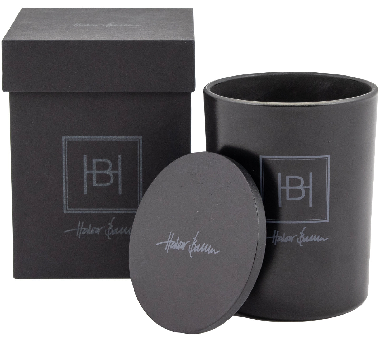 Duftlys av vegetabilsk voks i en vakker, sort glassbeholder med trelokk. Design: Halvor Bakke.