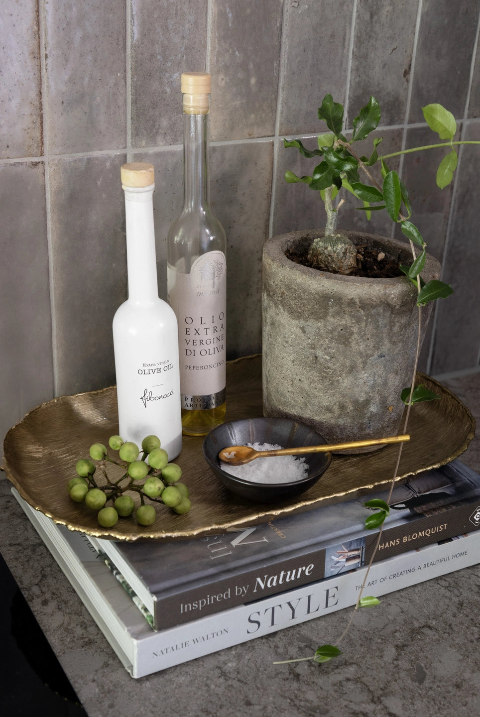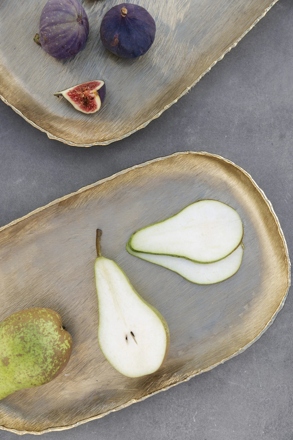 Ines brett med ramme i matt gull finish – en stilren detalj som gir et hint av eleganse til servering eller dekor.