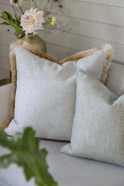 Oria pynteputetrekk i beige sandfarge med elegant frynsekant setter et stilrent og sommerlig preg på stue, terrasse eller utestue. Perfekt for å friske opp hjemmet med et lett og sofistikert uttrykk.