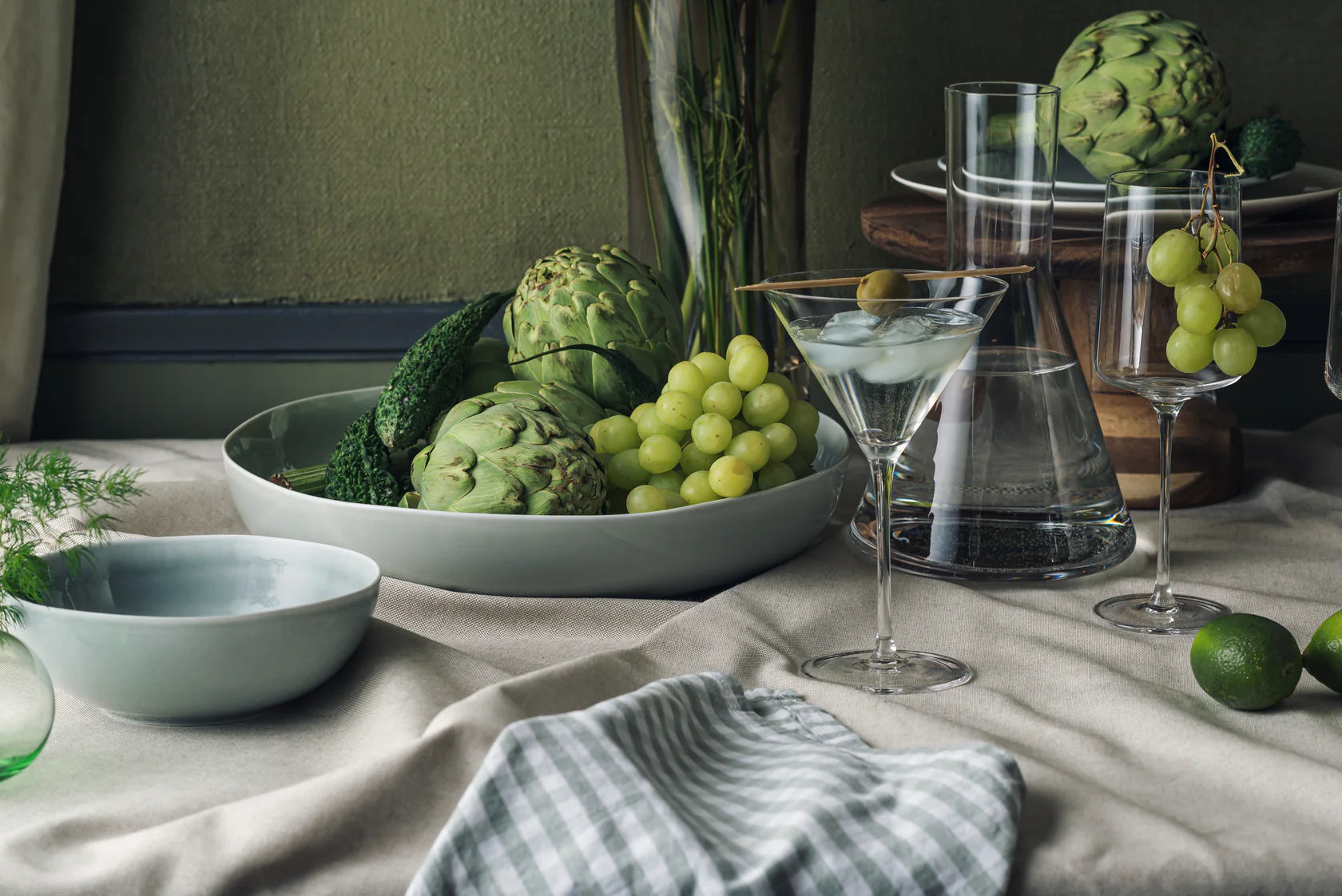 Ellie-serien tilbyr et tidløst formspråk med unike detaljer, som de ujevne kantene og reaktive glasuren. Dette gir hver del en naturlig og personlig sjarm. Lav bolle 33 cm Dusty Green kombinerer funksjonalitet og estetikk, perfekt til både hverdagsbruk og fest.