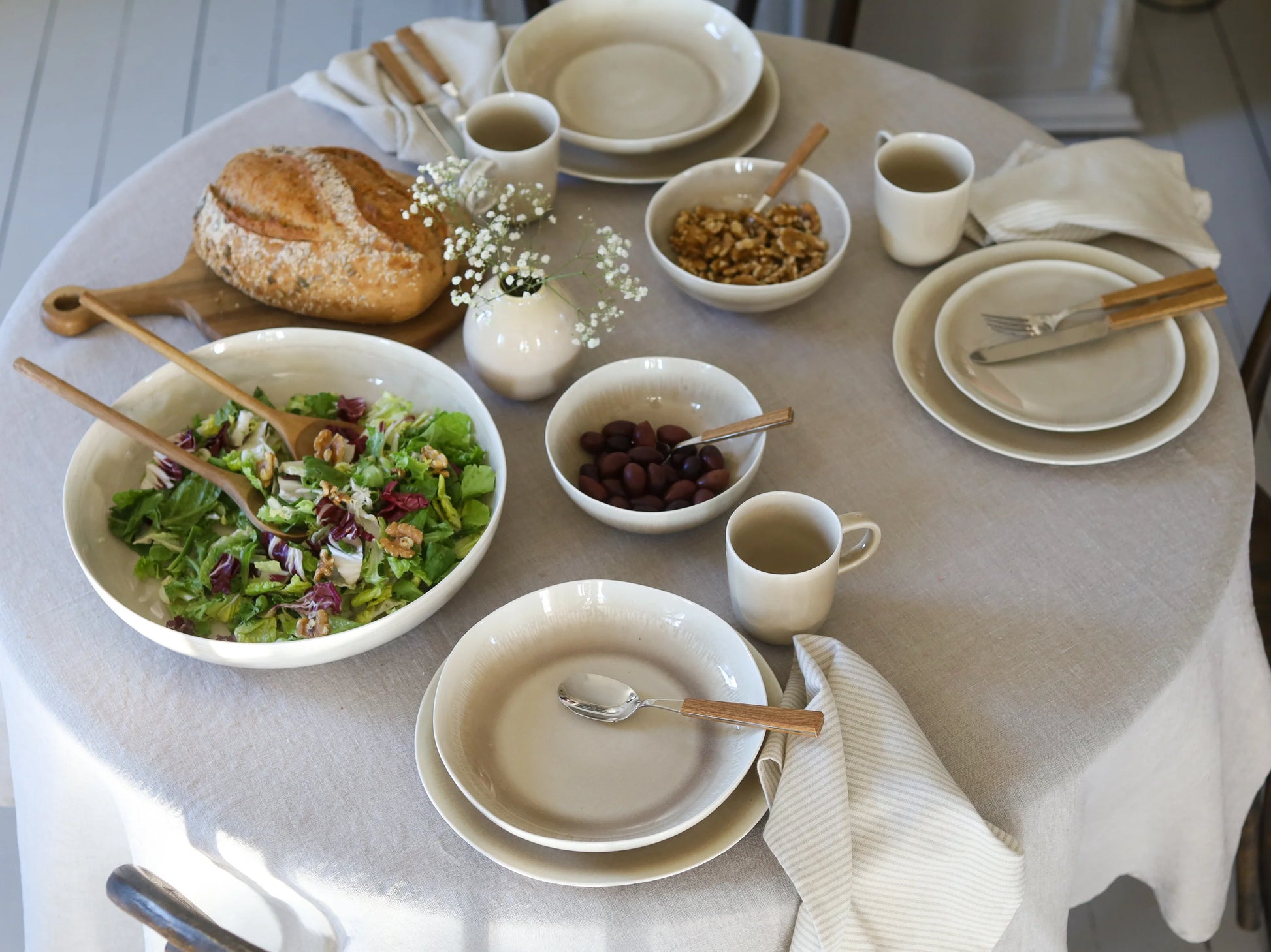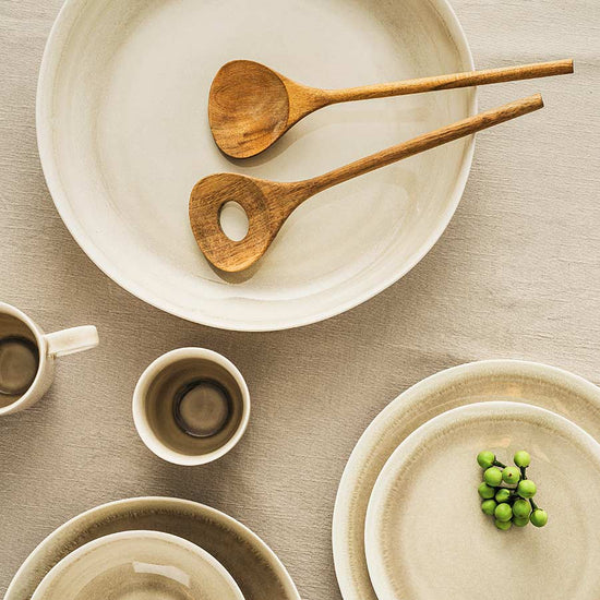 Ellie-serien kombinerer tidløse pastellfarger med reaktiv glasur, som gir hver del unike variasjoner og en håndlaget følelse. Den lave bollen på 33 cm er både funksjonell og dekorativ, og passer perfekt til alle anledninger, fra hverdagsbruk til fest.