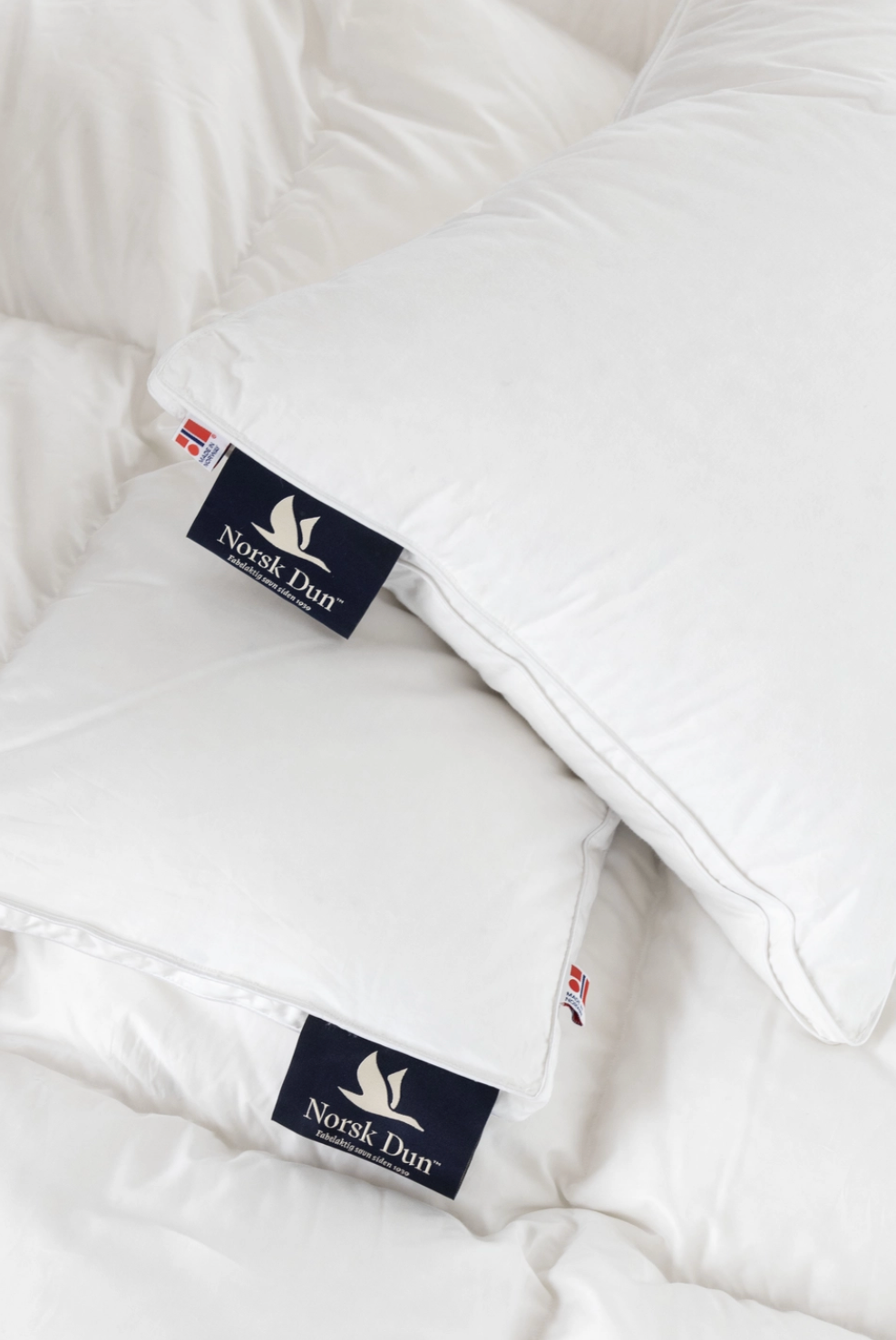 Fylt med kun europeisk muscovy andedun, gir denne puten en lun og myk støtte med litt mer høyde – perfekt for deg som ønsker å synke behagelig ned uten at puten føles flat. Passer godt for både side- og ryggsovende, og gir følelsen av å bli mykt omsluttet hver gang du legger deg ned.