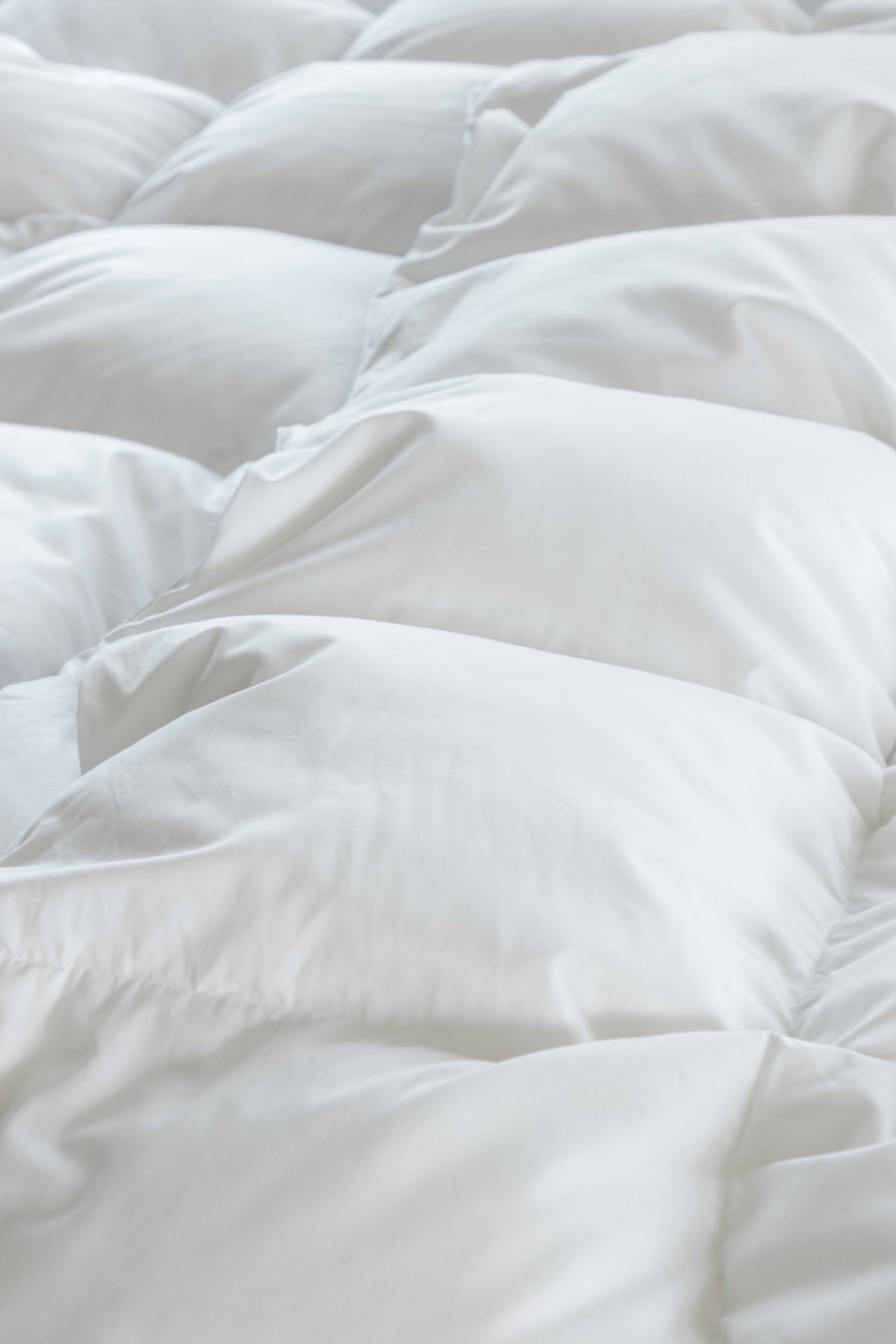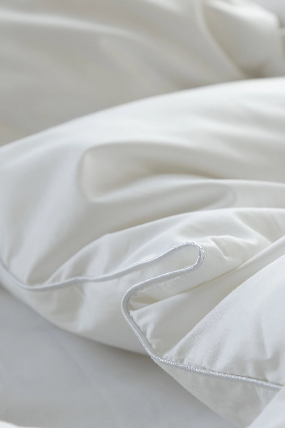 Fylt med 50 % europeisk andedun og 50 % små fjær, som gir lavere volum, men økt tyngde og fastere støtte. Dynen tidligere seg tett rundt kroppen og gir stabil komfort. Trekket er i TC233 cambric – en tettvevd, pustende og lett bomull som sørger for enkel, myk komfort mot huden.