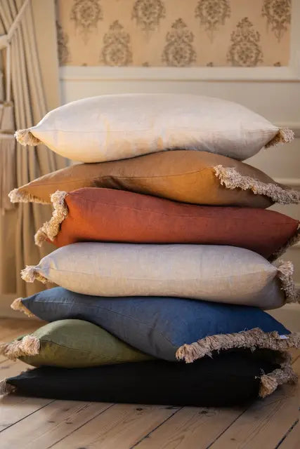 Nydelig Rebell pyntepute i 100 % lin. Deilige farger med naturfarget frynse på kortsidene for det lille ekstra.